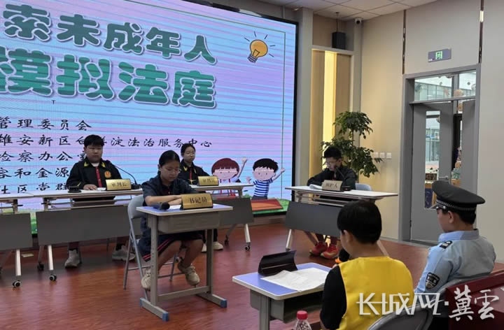 2025年暑期免费托管期间,雄安容和金源小学举办的模拟法庭。雄安容和金源小学供图