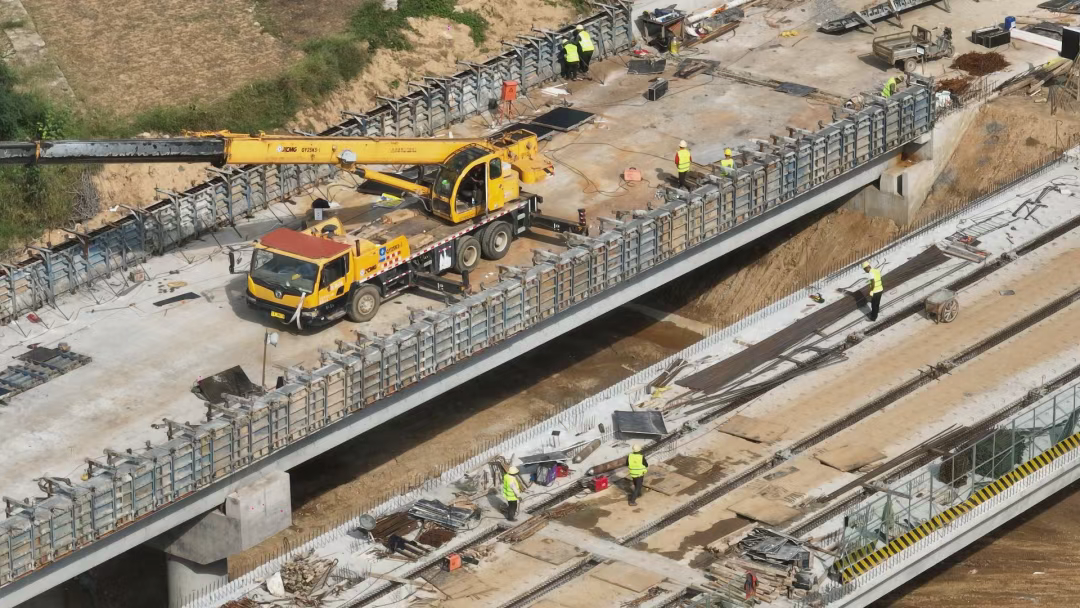 据项目负责人介绍,截至目前各项施工任务有序推进,围堰施工已全面完成。灌注桩、挡土墙、柱墩、地系梁、预制混凝土箱梁、盖梁、柱系梁、耳背墙、消力池等核心构件也已全部完工。在箱梁吊装环节,项目计划吊装80片箱梁,现已完成40片,整体工程进度已达总工程量的85%。