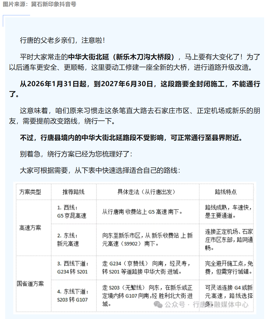 修桥啦!走中华大街北延去石家庄的朋友请注意绕行!