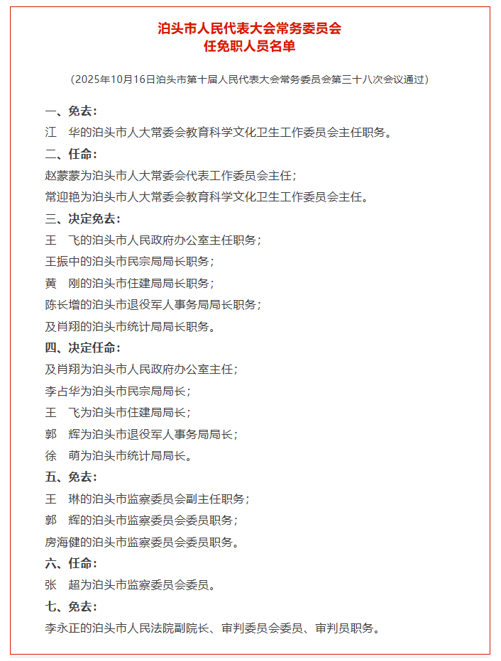 河北省沧州市人事任免