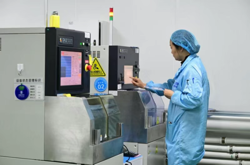 在柏乡县河北奥索电子科技有限公司物联网高端传感器项目5000余平方米的厂房内,一排排机器在无尘车间整齐排列,工人正加紧生产。
