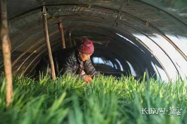 农户们正在收割韭菜。赵江涛 摄