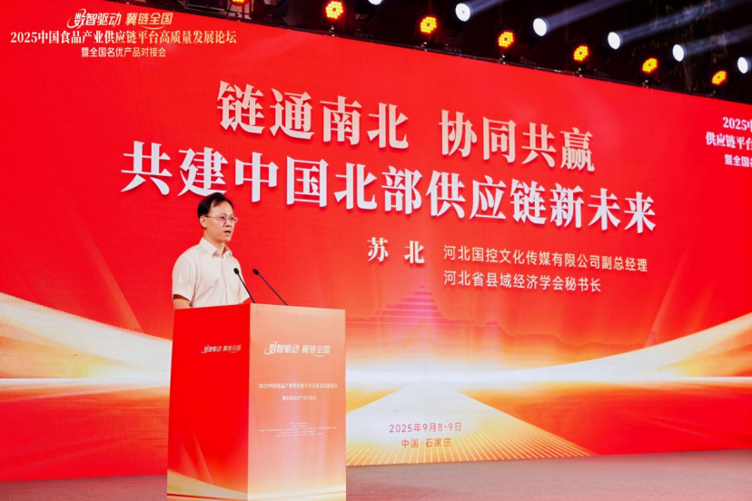 接下来,迎来了本次活动的重要环节——中国(北部)供应链平台联盟成立仪式。联盟发起人、河北国控文化传媒有限公司副总经理、河北省县域经济学会秘书长苏北发表了“链通南北,协同共赢:共建中国北部供应链新未来”的主题发言。他指出,“链通南北”,意味着打破地域壁垒和信息孤岛;“协同共赢”,是联盟的核心价值理念;“共建中国北部供应链新未来”,是所有联盟成员肩负的共同责任与宏伟目标。