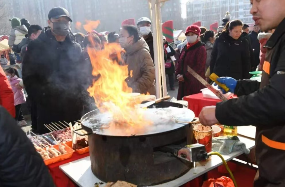 非遗区内,烧饼炉子刚开盖,“滋啦”一声,芝麻香混着面香直往鼻子里钻,大锅里的焖子,香味浓得化不开,糖画师傅手腕一转,金黄的糖丝就变成了小兔子、大鲤鱼……各种香味热热闹闹地挤在一块儿。“胡氏蜂蜜”的第四代传承人胡建怡正请大家品尝蜂蜜新品。“能参与这样的全国性年货节,对我们非遗从业者来说是很好的展示机会,希望通过这个平台,让更多人喜欢非遗、传承非遗。”胡建怡说道。活动现场。刘永兴摄